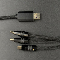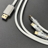 三又で8Kでも安定するやばいケーブルだと思います。テーブル周りはスッキリしますし、PCに接続するケーブルも減らせる一石二鳥の品だと思います。